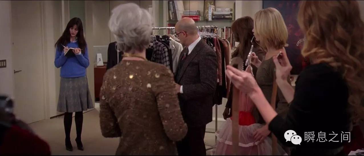 在电影中有一段谈及潮流和时尚传播的场景,穿普拉达的女魔头是这样教育初出茅庐的安妮·海瑟薇的: