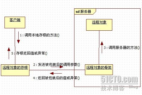 在进行数据通讯前,还必须做一些准备工作。 占位程序就象客户端机器上的一个本机对象,它就象服务器上的对象的代理,向客户端提供能够被服务器调用的方法 。然后,Stub就会向服务器端的Skeleton发送方法调用,Skeleton就会在服务器端执行接收到的方法。