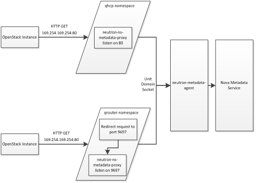 从配置可以看出,为了使 OpenStack Metadata service 在 Linux network namespaces 中工作,利用了 OpenStack Neutron 中的部分服务。而且还可以看出,neutron-metadata-agent 与 Nova Metadata 服务相连了。接下来介绍一下 neutron-metadata-agent。