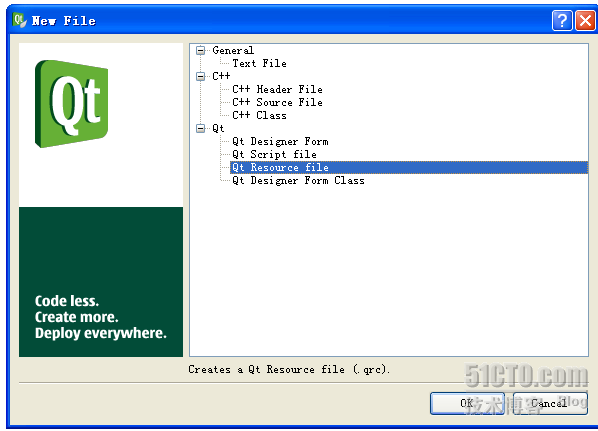 为了添加图标,我们首先要使用Qt的资源文件。在QtCreator的项目上右击,选择New File...,然后选择resource file。