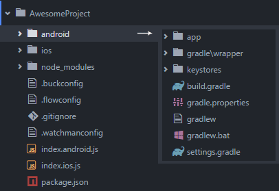 如何使用React Native?参照 官方指南 ,你会发现官方告诉你的是:请用 react-native init 命令来创建一个React Native项目。这个项目的根目录结构是这样: