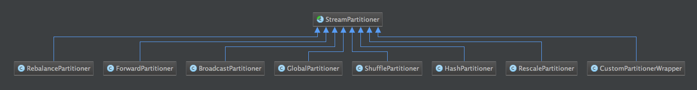 该分区器将记录转发给在本地运行的下游的(归属于 subtask )的 operattion 。其实现跟上面的 GlobalPartitioner 一致,就不贴代码了。