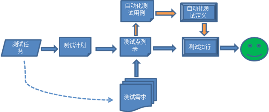 图 1 显示了在 TDD 技术下测试人员的测试过程,TDD 的测试要求的是单元测试,一般开发人员用什么语言,单元测试就用什么,基本上没有选择,在此其中,测试人员参与的机会不多,通常有了测试任务后,测试人员会将它分成测试计划,然后再细分成测试点列表,每一份测试列表可能又对应着一份自动化测试用例,所以这个阶段就需要保持三份文档: 需求文档 + 测试点文档(计划和测试点)+ 自动化测试用例,整个 TDD 的过程中,自动化测试用例的编写是在测试点列表出来之后。