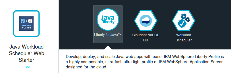 为了回答这个问题,我们引入了 Java Cloudant 样板的一个扩展版本。除了 Liberty Java 运行时和数据库,现在还可使用 Workload Scheduler 服务。您可创建各类流程并计划在需要时运行它们。然后可将这些流程集成到您的应用程序中,完全自动地执行这些流程。