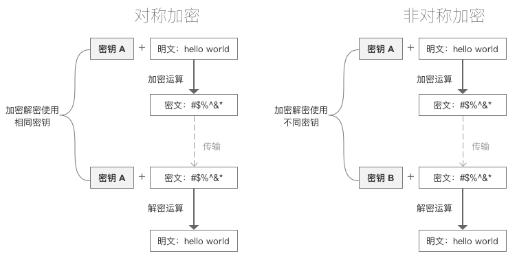 公钥密码学兴起之前,对称加密是主流的加密模式,人们基于秘钥来对信息进行加解密,通常情况下,密钥越长,代表着密文被破解的难度越大。由于加密算法和解密算法都是同一模式,只有一把密钥保证加密数据的安全,因此这种加密算法也叫做“对称加密算法”。对称加密有一个最大弱点:甲方必须把密钥告诉乙方,否则乙方无法解密。而保存和传递密钥,就成了最头疼的问题。