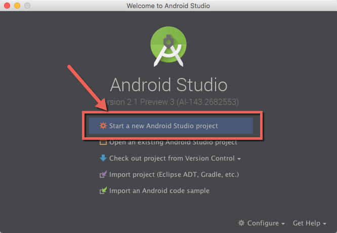 可以开发属于自己的应用,是否有点小激动?好吧!让我们开始,首先点击Start a new Android Studio Project创建工程:
