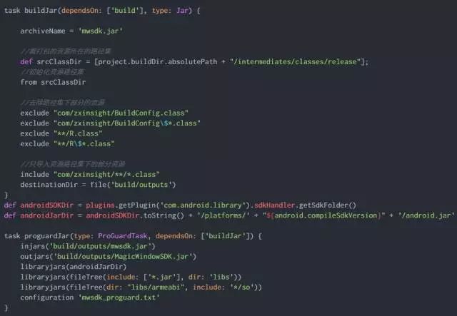 接下来我们来看看借助gradle如何实现sdk混淆,核心的task是proguardJar这个task。