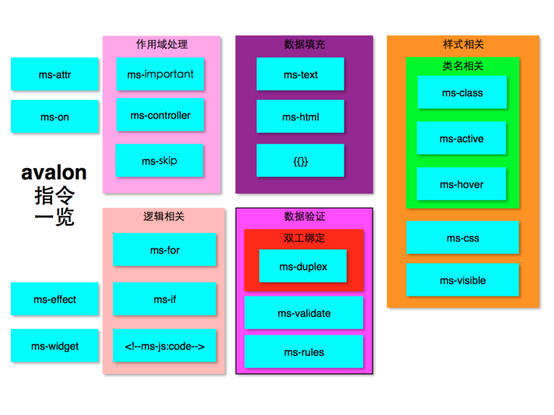 avalon 的指令在上一节已经全部介绍完毕,当然有的语焉不详,如ms-js。本节主要总结我对这方面的思考与探索。
