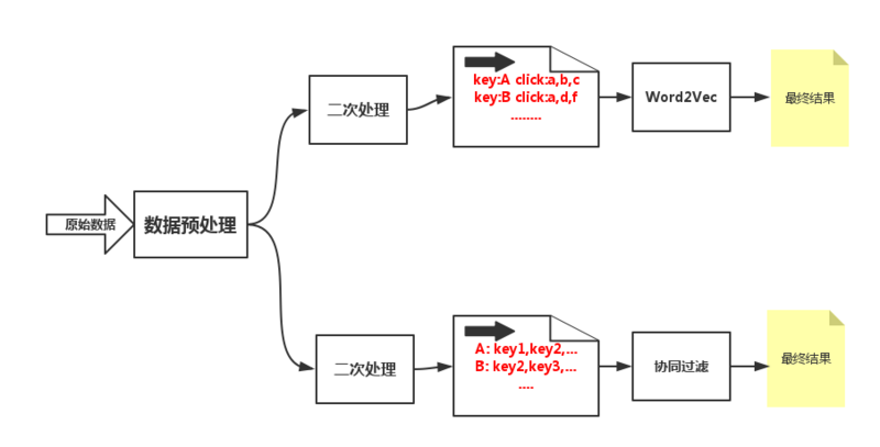 上一节我们说了使用 通过结果集的协同过滤 和 word2vec 这两个方案,那么如何来设计这个流程完成这两个算法的验证呢?