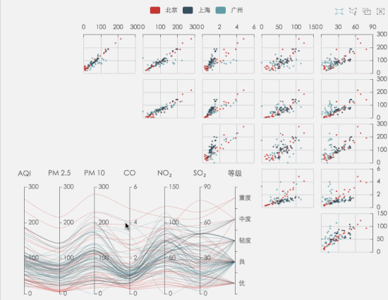 散点矩阵与平行坐标轴的联动