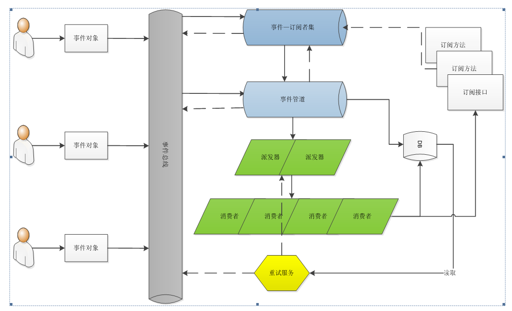 //实例化事件总线,使用内存队列 final EventBus eventBus = new EventBus(new MemoryChannel(1024)); //注册消费者 eventBus.register(new ListenerSub()); eventBus.register(new BothSub()); //启动事件总线 eventBus.start(); //发送事件消息(需要启动后才能发送) eventBus.publish(new SimpleEvent()); eventBus.publish(new EventAny()); eventBus.publish(new EventA()); //停止事件总线 eventBus.stop();