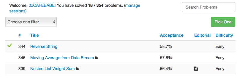 今天下午闲来无事,突然想到一直都没有完成的刷爆 LeetCode 的成就,于是就又跃跃欲试了。