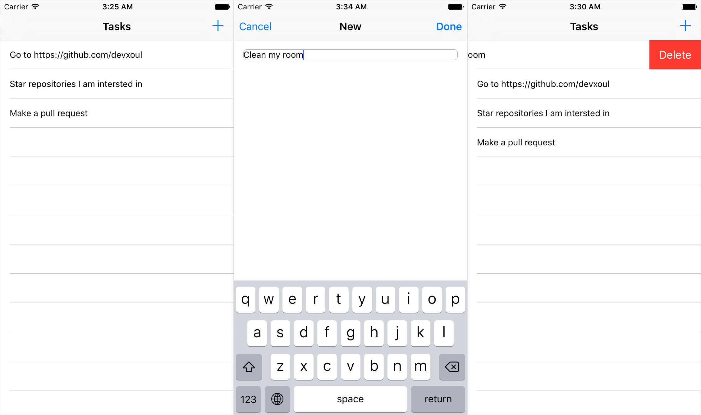 RxTodo is an iOS application developed usingRxSwift and MVVM design pattern. This project is for whom having trouble with learning RxSwift and MVVM due to lack of references. (as I did