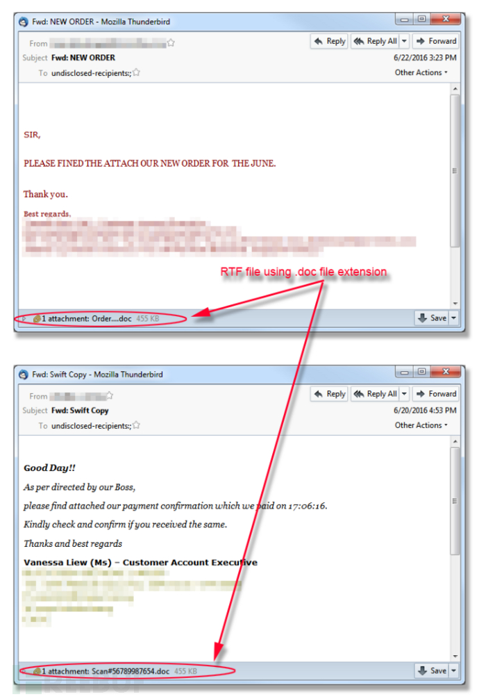 在对此次攻击分析之后,我们又发现了另外一个包含CVE-2012-0158漏洞利用代码的RTF邮件攻击。虽然这两个漏洞都比较过时了,但仍然被广泛用于邮件攻击中。