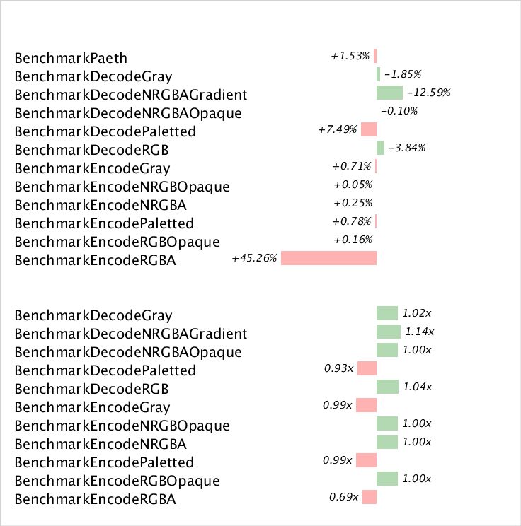 第三个要介绍的工具是 benchviz ,它使用benchcmp的结果,但是可以图形化显示性能的提升: