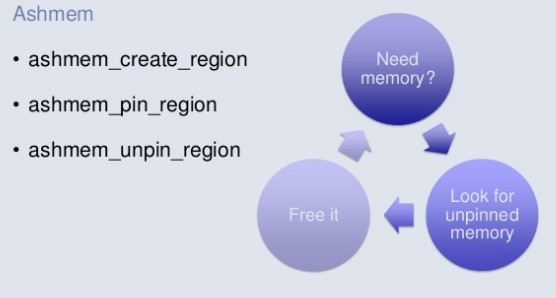 Ashmem一般在应用层中是无法直接访问的,除了几个特例之外。其中之一就是 decode bitmap ,我们可以通过设置 BitmapFactory.Optinons.inPurgeable = true 来创建一个 Purgeable Bitmap ,这样decode出来的bitmap是在Ashmem内存中,GC无法自动回收它。当该Bitmap在被使用时会被 pin 住,使用完之后就 unpin ,这样系统就可以在将来某一时间释放这部分内存。