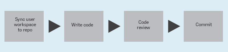 管理这样一个大规模的库及其相关活动是一项巨大的挑战。虽然经过了多年的试验,但谷歌还是没能找到一个商业或者开源版本控制系统来管理这种规模的单体代码库。于是,谷歌基于标准的基础设施(最初是 BigTable ,现在是 Spanner )构建了Piper来存储和管理它。Piper分布在谷歌全球范围内的10多个数据中心里,基于 Paxos 算法来保证副本之间的一致性。该架构提供了很高的冗余水平,并帮助谷歌的开发人员优化网络延迟,而不管他们工作地点在哪里。该系统的工作流程如下: