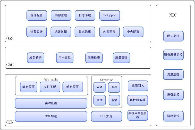 ChinaCache的CDN架构,其部分核心运营支撑系统如下图所示: