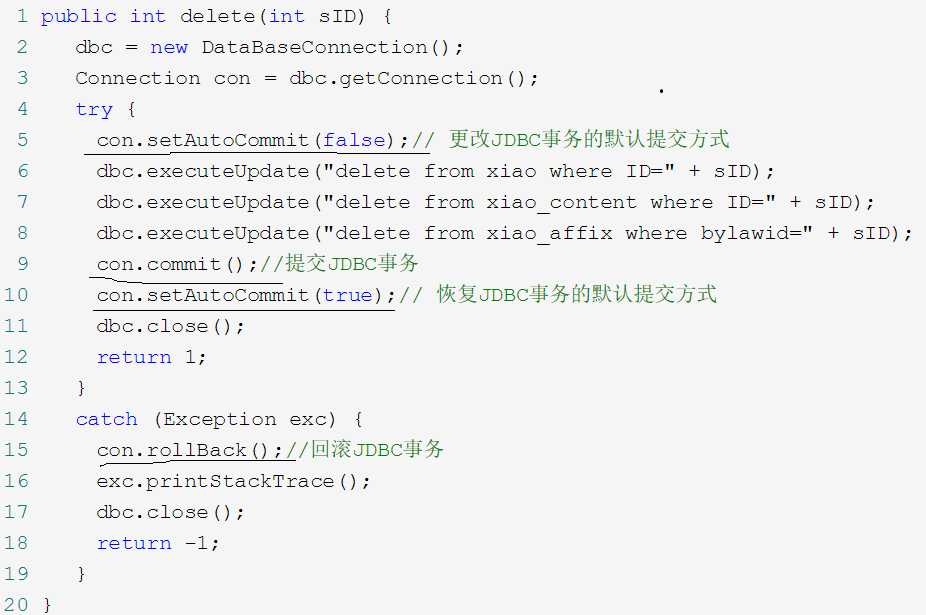 为了把多个事务当成一个事务执行,就必须强制阻止自动提交(第五行)。