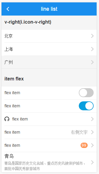 结构方面,标签可以是 ul.line-list>.line-item 或者 div.line-list>a.line-item ,前者用于单页应用,后者用于链接跳转。