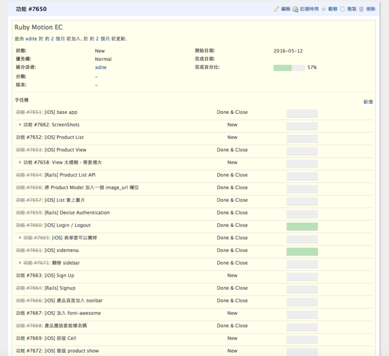 - 這次這個功能寫了哪些 code。(是的,我不止 git 記了一份,redmine 上還複製了一份)