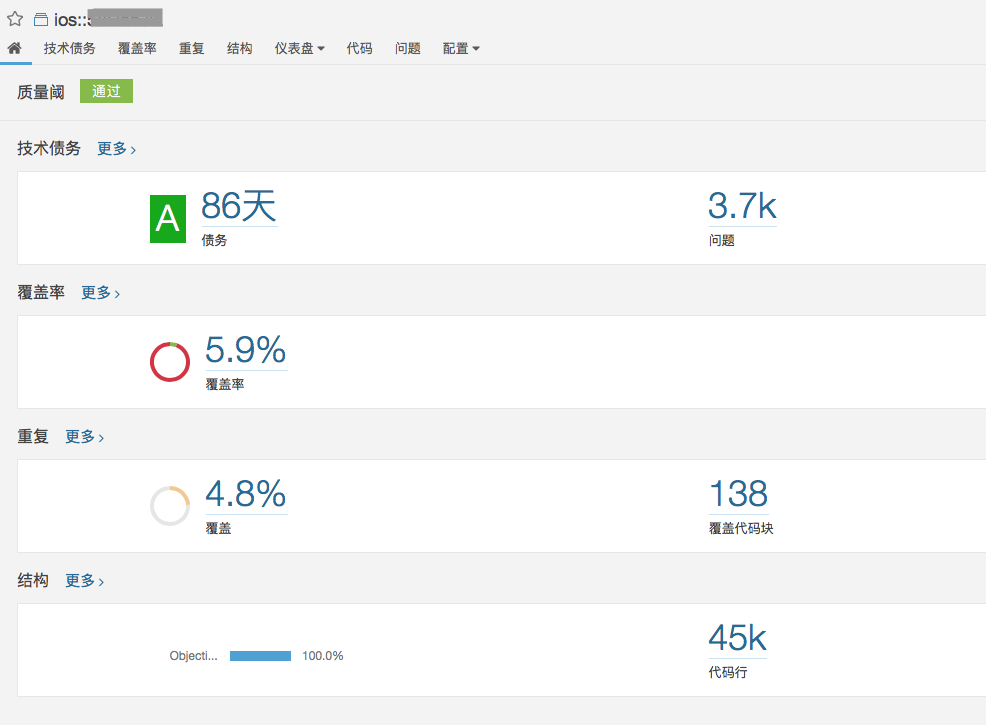 行业内提到"代码质量管理, 自动化质量管理", 一般指的都是通过Sonar来实现。本文的目标是实现在Sonar上显示出iOS项目, 先看张最终的效果图: