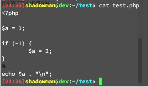 $apple = 1; if (-1) { $apple = 2; } echo $apple; 相信很多人看到的第一反应是输出1,这不是很简单么?然而并不是,输出的是2(PHP 7.0.4 (cli)) CodePad
