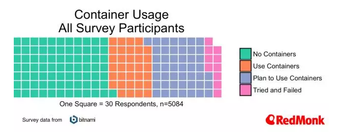 第一个比较有趣的数据就是目前正在使用容器,以及计划在未来使用容器的人的数量,他们目前正在评估和开发容器策略。