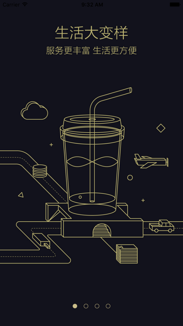 // 初始化引导页控制器 LZXViewController *view = [[LZXViewController alloc]init]; // 设置引导页图片 view.dataArray = [NSArray arrayWithObjects:@"first.jpeg",@"second.jpeg",@"three.jpeg",@"fourth.jpeg", nil]; // 设置跳转界面 view.controller = [[ViewController alloc]init];