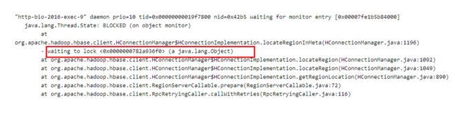 最近某业务在使用HBase客户端读取数据时出现了大量线程block的情况,业务方保留了当时的线程堆栈信息,如下图所示: