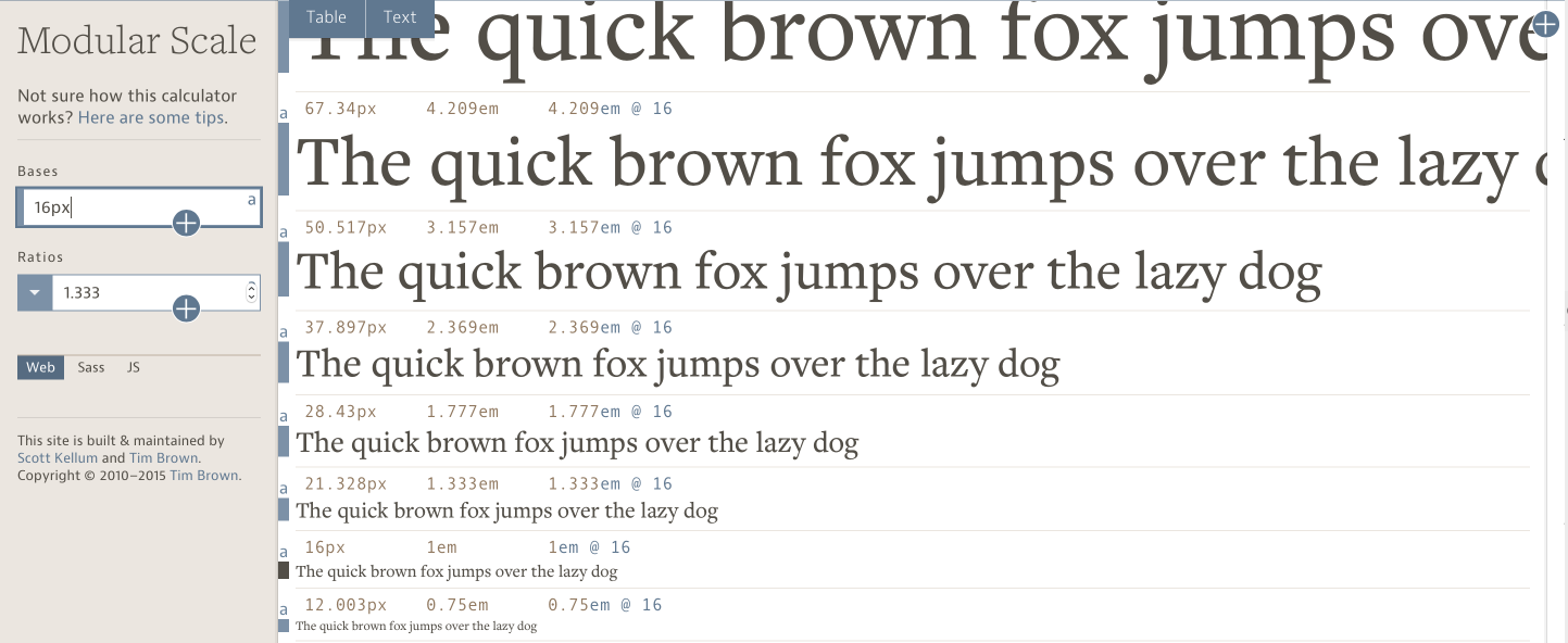 如果你不想在每个不同的字体map上写准确的 em 值(例如 1.769em ),你可以使用Sass mixin的模块化文本缩放。