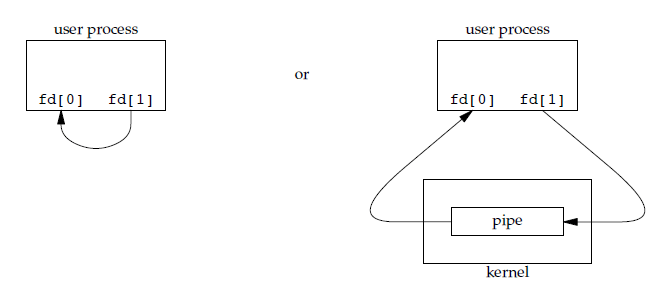 这个方法将会创建出两个文件描述符,可以使用pipefd这个数组来引用这两个描述符进行文件操作。pipefd[0]是读方式打开,作为管道的读描述符。pipefd[1]是写方式打开,作为管道的写描述符。从管道写端写入的数据会被内核缓存直到有人从另一端读取为止。我们来看一下如何在一个进程中使用管道,虽然这个例子并没有什么意义: