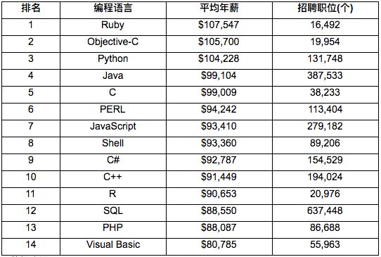 据美国 Rasmussen College(拉斯姆森学院)发表的一篇文章显示,在数以百计的编程语言中,以下14种编程语言最具“吸金”能力。