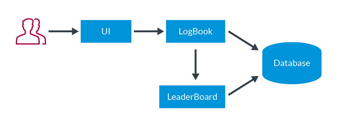Repmax应用程序可以记录追踪用户的举重成绩,并用每次举重前五名选手的成绩生成排行榜。其中 logbook 服务负责通过UI收集每次练习的数据并存储每位用户的完整历史信息。当用户在练习完毕录入成绩后, logbook 会将此次举重的详细信息发送至 leaderboard 服务。