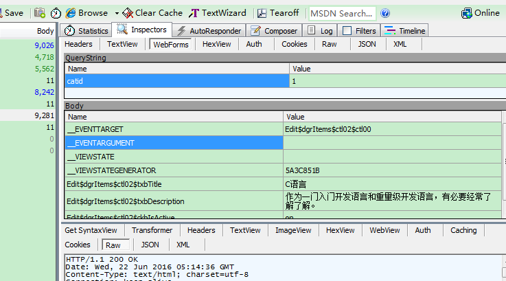 使用fildder,可以很方便的看到你的表单提交的内容,从而方便的确认哪些数据是正确的,哪些是超出预期的,并且很方便的查看返回值。如图: