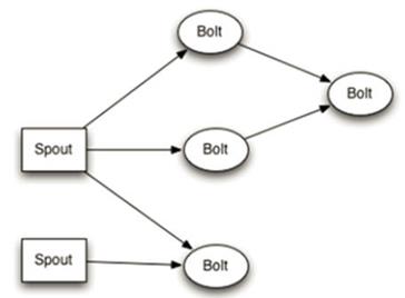 Storm 是目前流行的分布式实时流计算框架之一,它提供了可容错分布式计算所要求的基本需求和保障机制,可以满足高吞吐 , 实时的关键业务应用的需求。在编写基于 Storm 的分布式计算应用时,我们首先需要创建一个拓扑(Topology), 拓扑是一个由 Spout 节点和 Bolt 节点构成的有向图,其中 Spout 节点负责采集数据并发射数据流到 Storm 集群,Bolt 节点负责从 Spout 节点或其他 Bolt 节点接收数据流,并进行业务处理。在编写基于 Storm 的分布式应用时,我们可以在 Bolt 节点中调用 ODM 规则集,从而将业务规则相关的逻辑和数据采集以及数据流的控制分离开来,在业务发生变更时,我们可以动态的重新部署新的规则集,而不是重新发布并运行整个 Storm 拓扑。