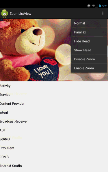 An Android custom ListView and ScrollView with pull to zoom-in.