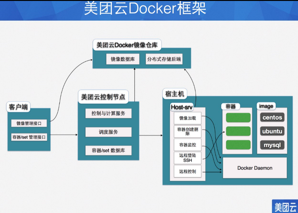 Docker发展了这几年,生态链已经日趋完善:编排、仓库、监控等都有很多startup在做,也已经做出了很多现成的东西。我们美团云内部有自己的控制器、registry、网络、除了镜像仓库和身份鉴别用的是openstack的glance和keystone外,剩下的所有组建都是自己写的,镜像仓库的后端也在开发计划中。