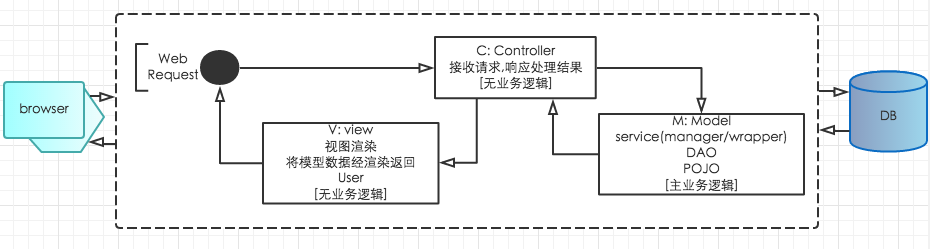 MVC(模型-视图-控制器)是一个 以设计界面应用程序为基础 的架构模式,通过分离模型-视图-控制器在应用中的角色将业务逻辑从界面中解耦: