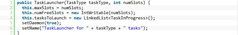 然后,在TaskTracker创建时,会根据上述maxMapSlots和maxReduceSlots的值来创建并启动2个TaskLauncher线程: