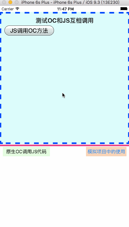 先上图,实现简单的oc和js互相调用的demo, 另外附加一个模拟项目中用到的oc和js互相调用场景: