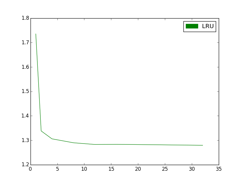 不变条件:cache_size 32KB,LRU,mapping_ways 8