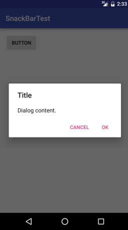 如果说Dialog和Toast是两个极端的话,那么Snackbar就是处于中间的位置了。Snackbar和Toast比较相似,但是用途更加广泛,并且它是可以和用户进行交互的。Snackbar使用一个动画效果从屏幕的底部弹出来,过一段时间后也会自动消失。