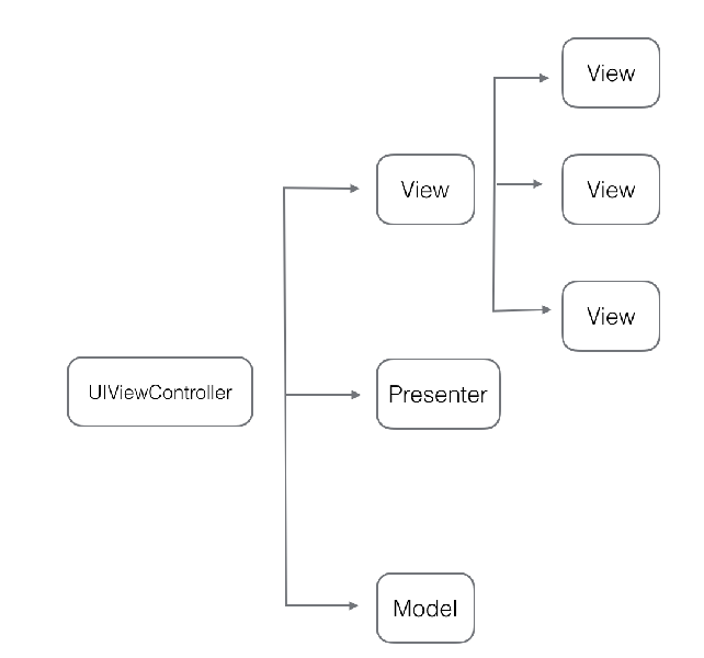 根据各个应用使用的设计模式不同(MVC,MVP,MVVM等),Controller所持有的Property也不相同。这里我们使用MVP作为例子,Controller所包含的对象就包括各种View对象,和Presenter,Model对象。当然每个对象又有可能持有更多的子对象。