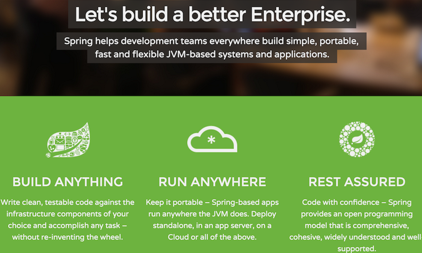 Springhelps development teams everywhere build simple, portable, fast and flexible JVM-based systems and applications.