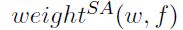 目标词w和特征f的新weight SA 分数计算法运用同义词与目标词之间平均相似度的差异,及反义词与目标词之间的平均相似度。只有那些包含在计算过程中的词汇才对应特征f拥有一个肯定的原始LMI分数。我们用距离的余弦值来计算两个词汇向量之间的相似度。倘若词汇w与我们所用词汇资源中的任意的同义词或反义词均没有关联,或倘若一种语义特征与词汇w之间不存在共现关系,我们定义结果为零。