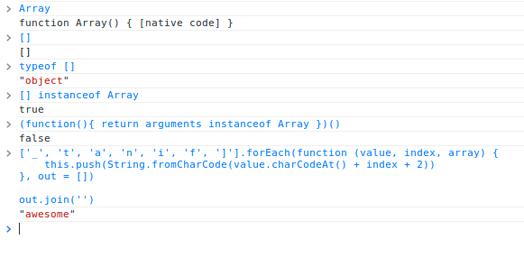 [97, 119, 101, 115, 111, 109, 101].map(String.fromCharCode).join('')