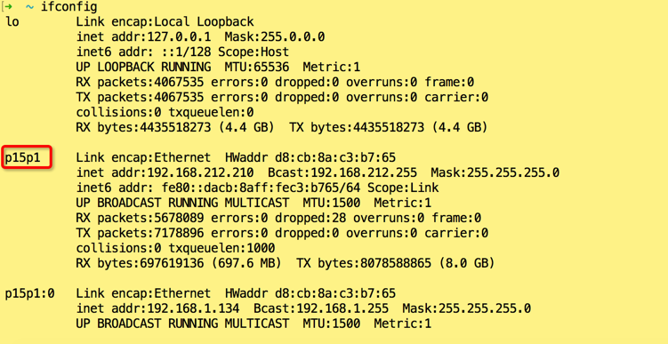 先来看一下问题, 我们通过 ifconfig 查看接口的名称 为 p15p1 , 一般机器为 eth0