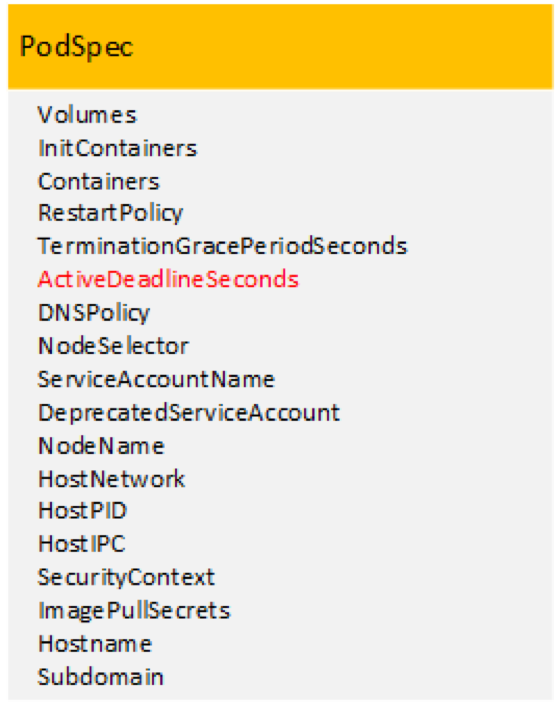 下面会介绍ResourceQuotaController控制器是如何进行管理的。首先,我们看一个结构体PodSpec,这个结构体用来存放POD的描述信息,如下图所示: