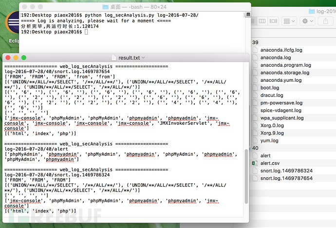 为了方便平时定期web服务器安全日志分析,闲暇时写了个小脚本,支持自动scp远程web服务器日志到本地,然后多线程安全分析,分析策略是软waf提取到正则,所以基本上目前主流的web攻击行为,sql注入、xss、扫描器扫描、webshell、目录遍历之类都可以配合分析。